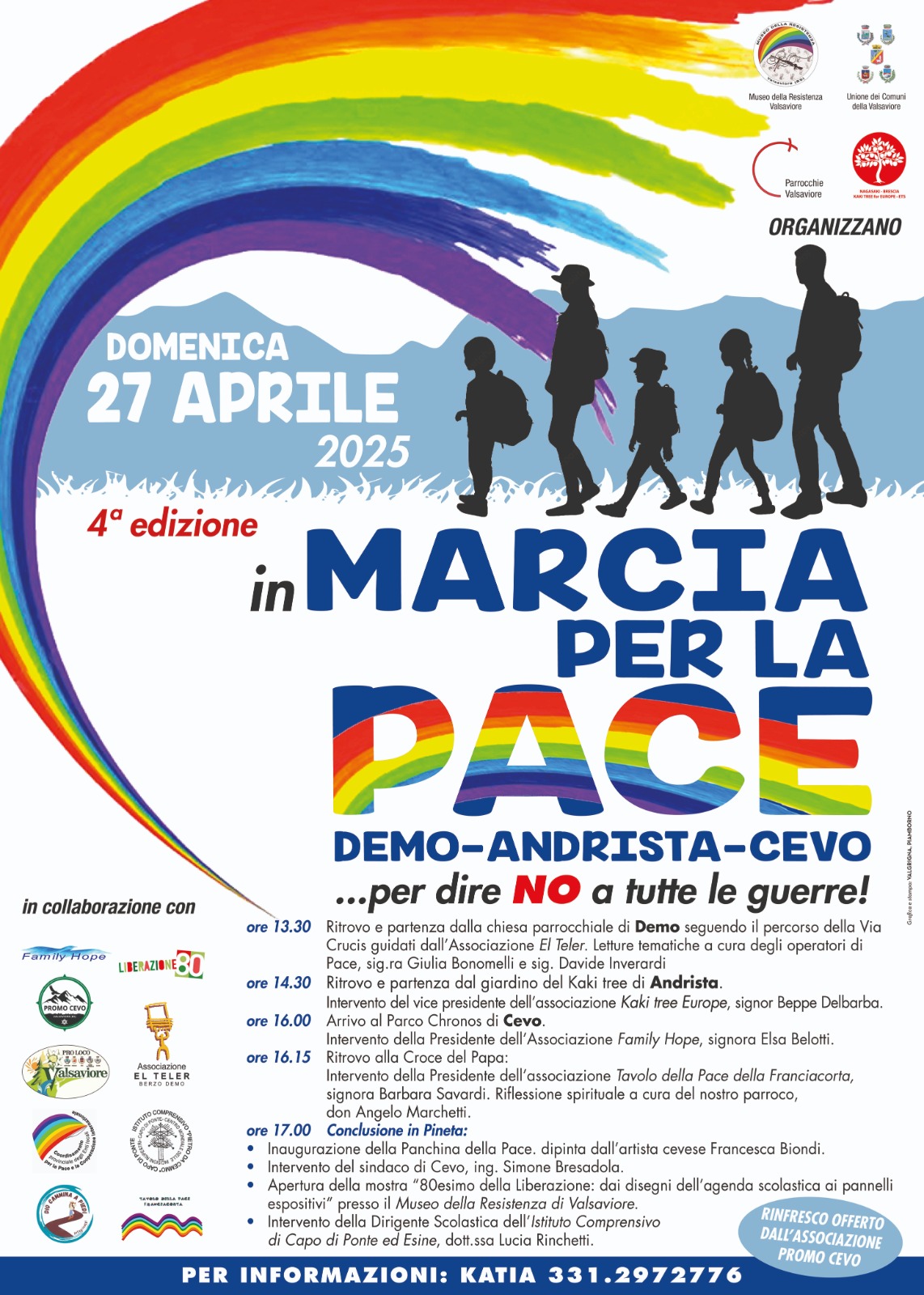 Domenica 27 aprile 2025 si terrà la 4^ edizione della Marcia della Pace con partenza dalla Chiesa di Demo alle ore 13.30